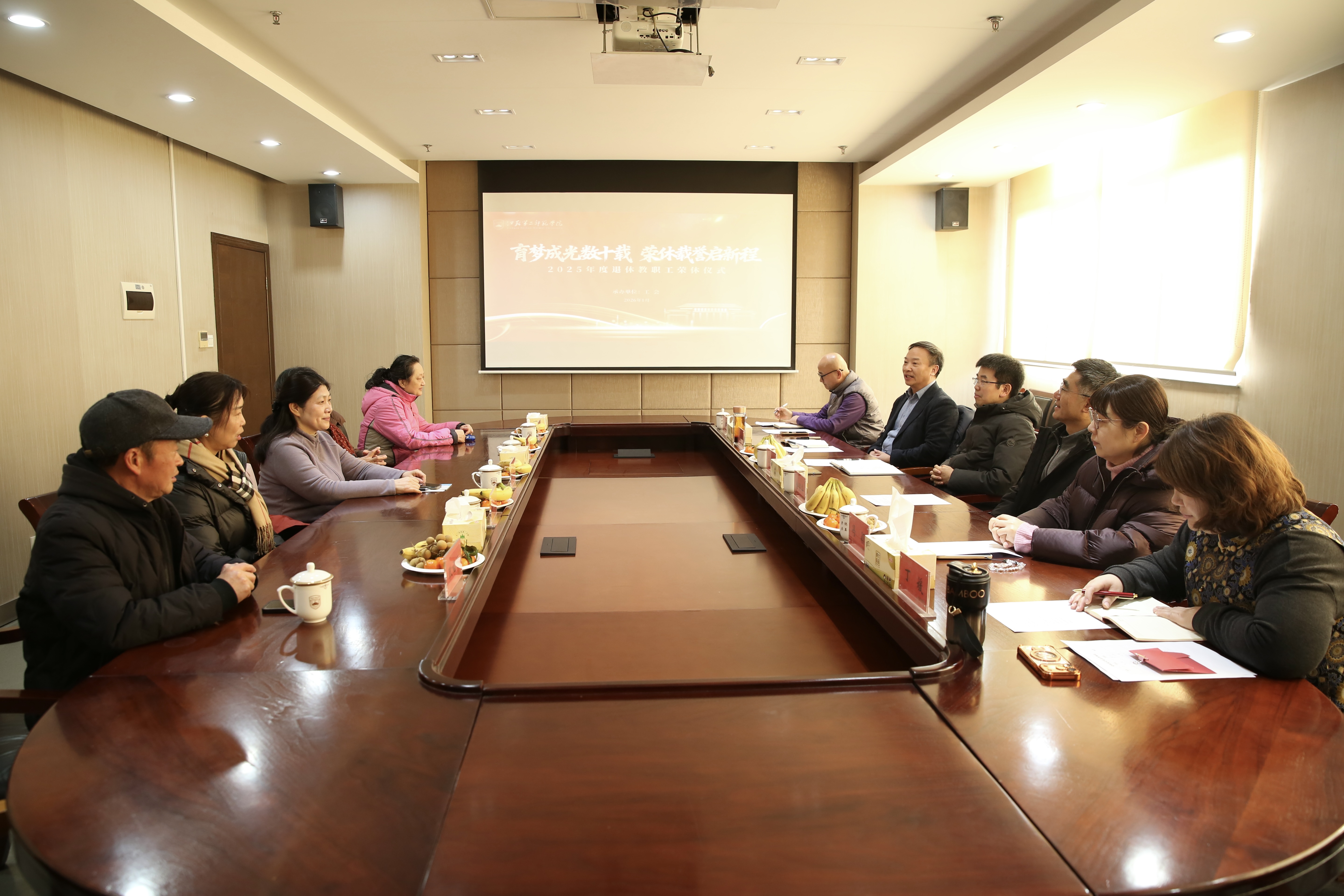 1月21日上午,我校在草场门校区科研楼505会议室举行2025年度退休教职工荣休仪式。党委书记兰亚明、校长徐国华出席会议,党委常委、副校长兼工会主席皇甫立同主持会议。